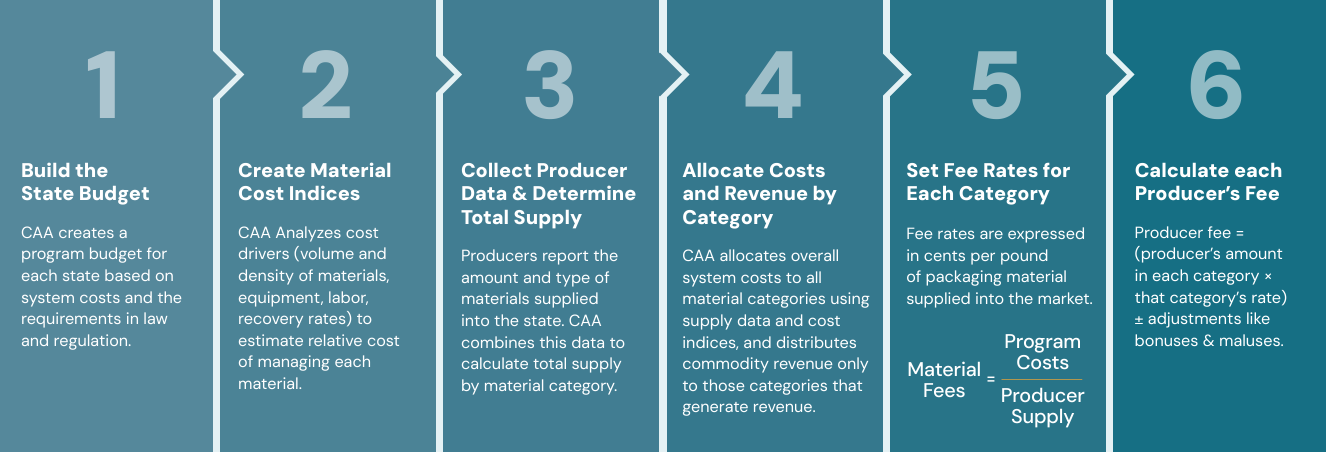 Producer Responsibility Organizations (PROs) like Circular Action Alliance (CAA) divide program costs among producers, using a fee-setting methodology built on principles of fairness.