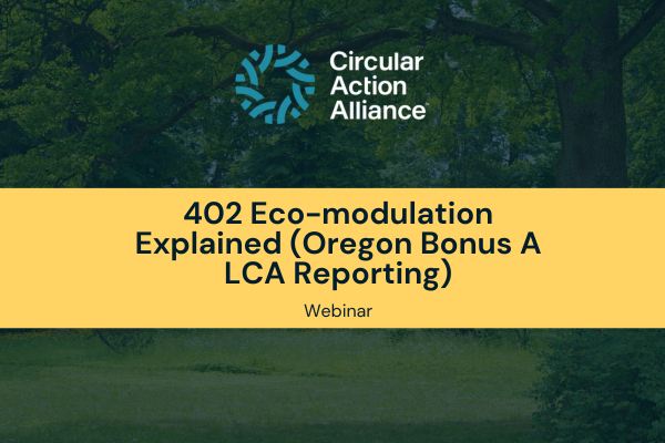This is a webinar hosted by Circular Action Alliance (CAA) where we'll explain the final fees for Oregon and walk producers through eco-modulation and LCA Bonus A and review frequently asked questions related to fees.